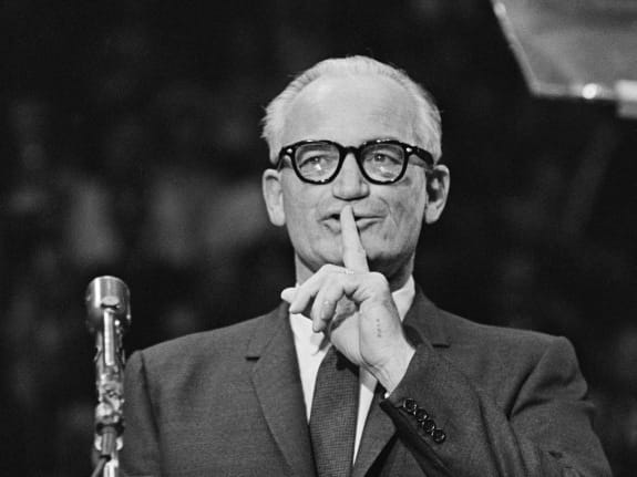 Barry Goldwater Published 2017-03-04 in Citizen TrumpPreviousNext United States Senator and nominee for president, Barry Goldwater (1909 – 1998) speaking at an election rally in Madison Square Garden, New York City, USA, 28th October 1964. (Photo by William Lovelace/Daily Express/Hulton Archive/Getty Images)